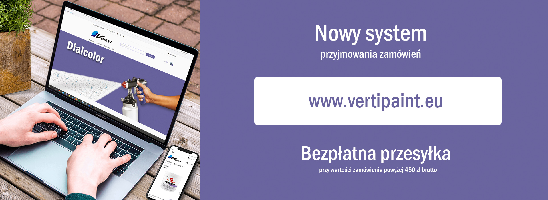 Wejdź na www.vertipaint.eu i zarejestruj się. Otrzymasz dostęp do zamkniętego systemu, w którym wygodnie i w dowolnym momencie zamówisz nasze produkty. Szybko i sprawnie określisz dane do wysyłki i w łatwy sposób opłacisz zamówienie. Zawsze będziesz miał wgląd w historię zamówień oraz aktualne ceny. Nie ominie Cię żadna promocja ani ważna informacja.